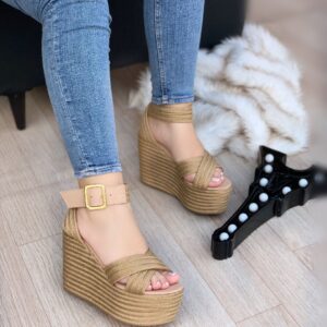 Sandalia en yute plataforma alta con correa – Mujer